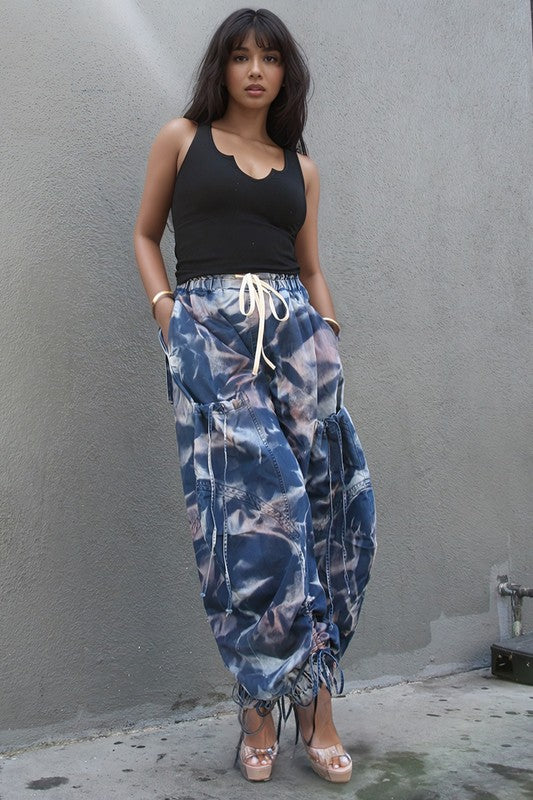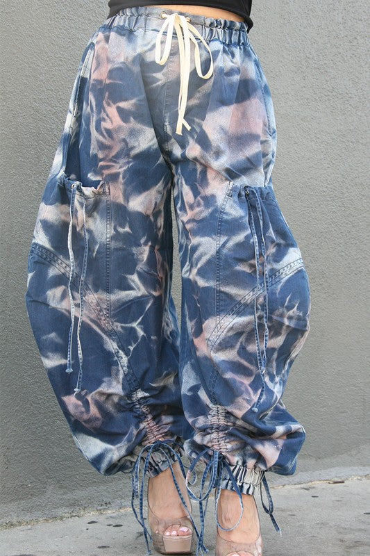 Urban Chic Drawstring Denim Cargo Pants